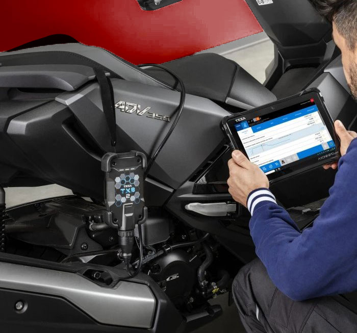 Δεν παίζουμε με τα ηλεκτρονικά της μηχανής σου. Η διαγνοση βλαβης πραγματοποιείται αποκλειστικά με το επίσημο μηχάνημα TEXA TXB2, το οποίο μας δίνει πλήρη πρόσβαση στον εγκέφαλο (ECU) της μοτοσυκλέτας σου, προσφέροντας δεδομένα σε πραγματικό χρόνο, όπως ακριβώς στα επίσημα εργοστασιακά συνεργεία.